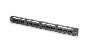 Patch panel kompletny 19 cali 24x RJ45 U/UTP kat. 6 1U z tacką czarny (RAL 9005) DN-91624U-EC
